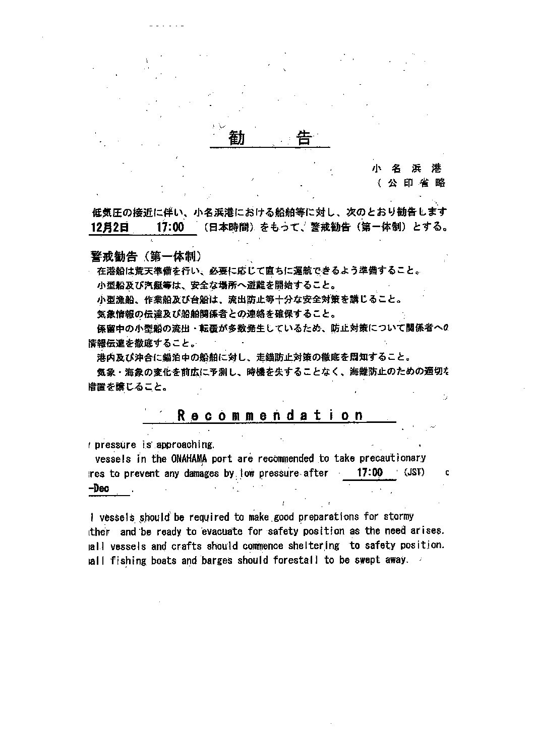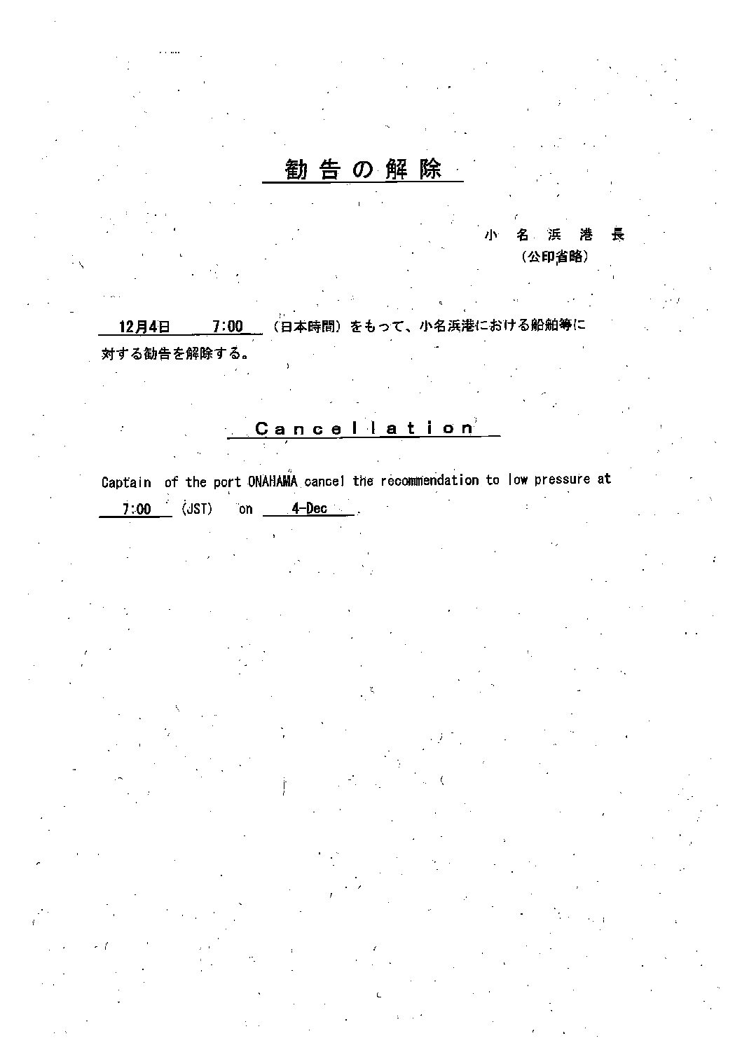 発令されていた警戒勧告が解除されました詳しくはこちらからマリーナについてMarina information