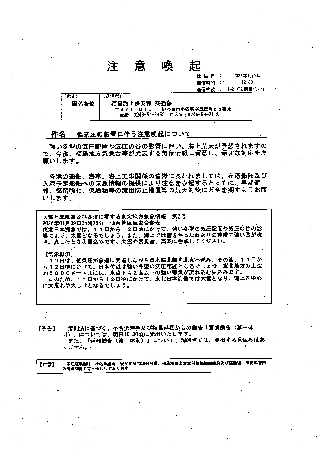 警戒勧告発令のお知らせ