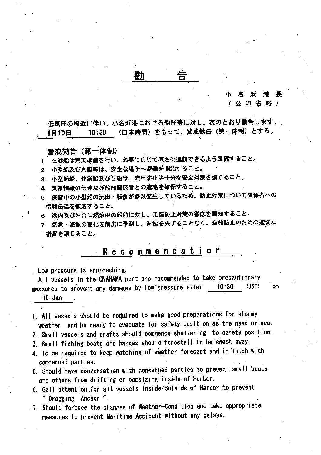 海上保安部からのお知らせ