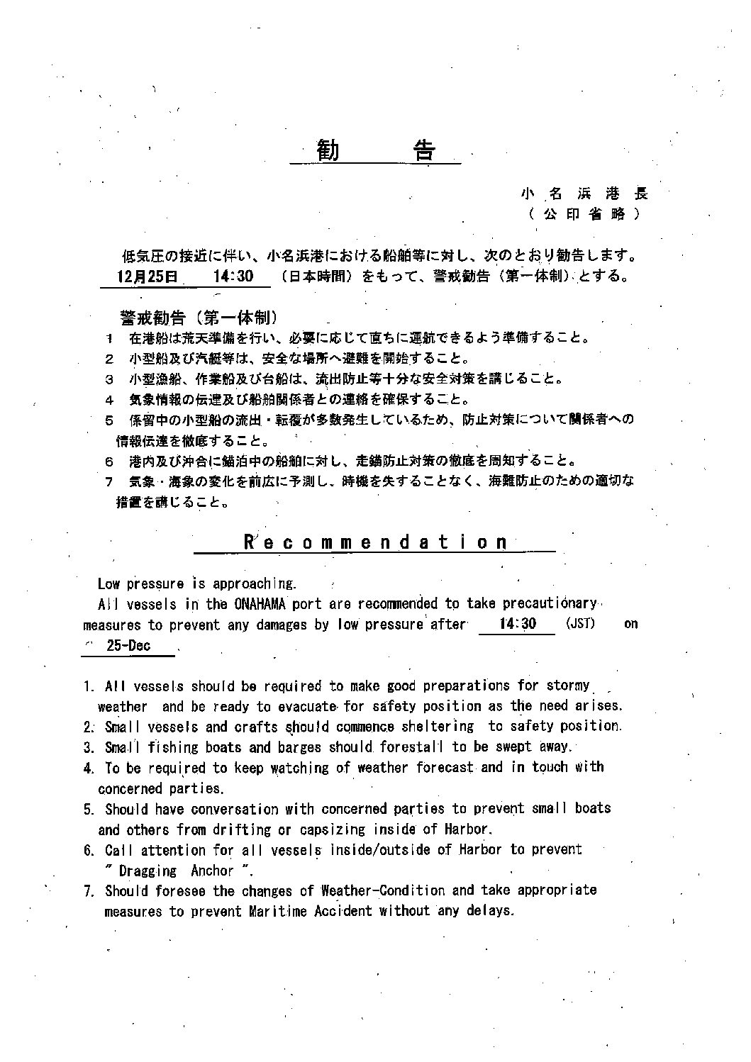 警戒勧告発令のお知らせ 2025.12.25 お知らせ 令和7年12月25日14時30分をもちまして警戒勧告が発令されました。オーナーの皆様におかれましては、今後の気象情報に留意していただくと共に、流出防止等十分な安全対策に努めて頂きますようお願い致します。